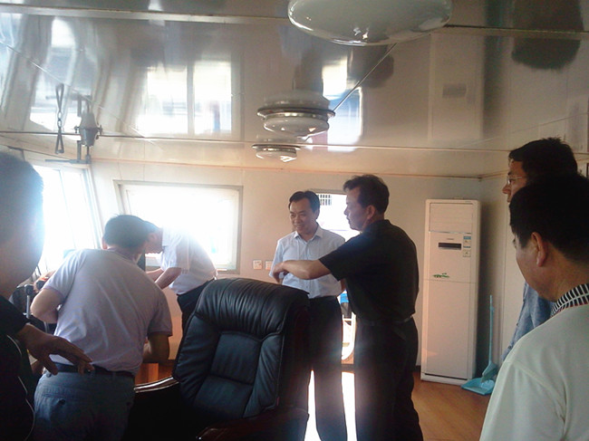 2012年6月20日在公司董事長(zhǎng)余龍懷、總經(jīng)理劉曹應(yīng)、副總經(jīng)理徐經(jīng)恒帶領(lǐng)下,公司黨群部、經(jīng)管部、業(yè)務(wù)部等部門負(fù)責(zé)人赴蕪湖舜龍18號(hào)江輪進(jìn)行了首次質(zhì)量標(biāo)準(zhǔn)化檢查。時(shí)逢盛夏、汛期,公司領(lǐng)導(dǎo)一行帶去了防暑慰問品對(duì)舜龍18號(hào)江輪人員進(jìn)行了親切的問候和真誠(chéng)的關(guān)愛。