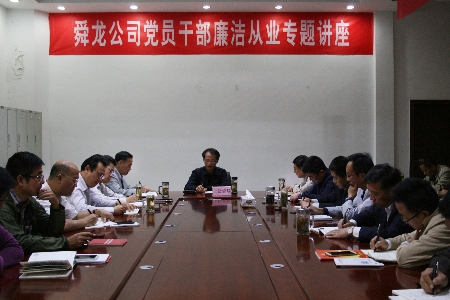公司黨委書記、董事長劉曹應(yīng)結(jié)合專題講座對公司全體黨員干部廉潔從業(yè)作了相關(guān)要求。他指出,反腐是執(zhí)政根基的保證之一,舜龍公司作為一家國有企業(yè),黨員干部要保持清醒的頭腦,認(rèn)識到當(dāng)前反腐形勢的嚴(yán)峻,并就當(dāng)前反腐形勢和“兩個責(zé)任”進(jìn)行了強(qiáng)調(diào):第一,全體黨員干部要切實增強(qiáng)廉潔從業(yè)的自覺性,筑牢局拒腐防變的思想防線,切實守住政治生命線、法律高壓線和紀(jì)律警戒線,時刻繃緊這三條防線。第二,落實黨風(fēng)廉政建設(shè)的“兩個責(zé)任”,即黨委主體責(zé)任,紀(jì)委監(jiān)督責(zé)任,要求每位黨員干部都要清楚自己肩上的擔(dān)子,守住自己的陣地,管好分管的人。第三,全體黨員干部要切實轉(zhuǎn)變工作作風(fēng),要正確把握廉潔用權(quán)與敢于擔(dān)當(dāng)?shù)年P(guān)系。他希望公司全體黨員干部在今后的工作中,懷著公心、責(zé)任心、事業(yè)心,保持政治健康,守住政治生命,做到忠誠于公司,干凈做事,勇于擔(dān)當(dāng)。