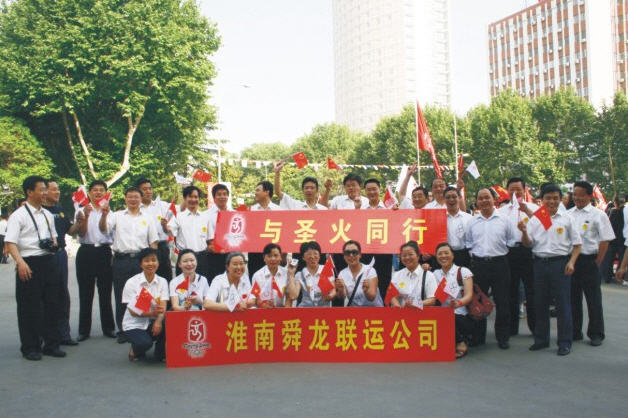 公司職工參加奧運會火炬?zhèn)鬟f現(xiàn)場
