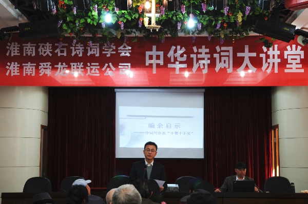“早春二月,綠柳拂堤”。在這樣一個春和景明的美麗季節(jié)里,舜龍公司二樓會議室里,韻律悠揚,詩意盎然。由淮南硤石詩詞學會、舜龍公司聯(lián)合舉辦的中華詩詞大講堂開講了!