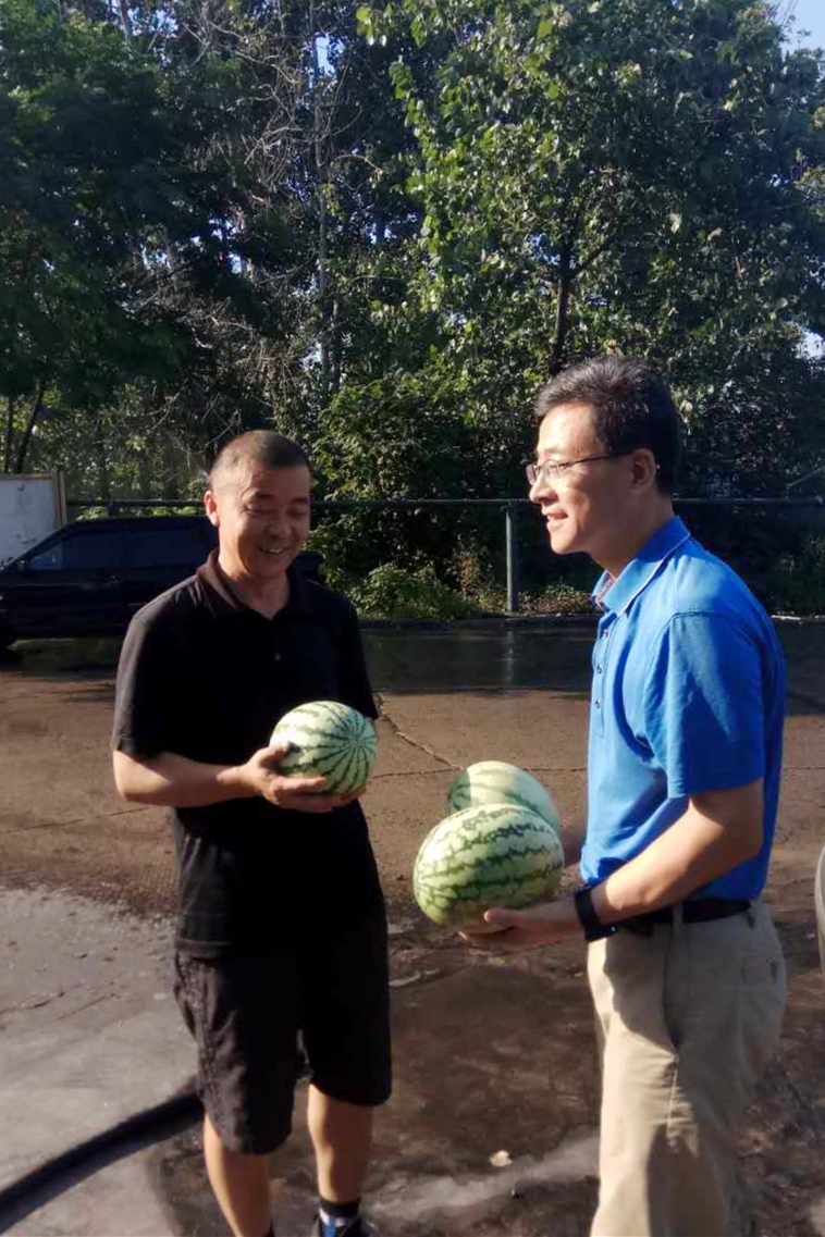 公司領(lǐng)導(dǎo)分批帶隊(duì)將西瓜、礦泉水等送到奮戰(zhàn)在一線的職工手中,帶去了公司的親切問候,并叮囑大家天氣炎熱,要注意防暑降溫,以保障安全為重。