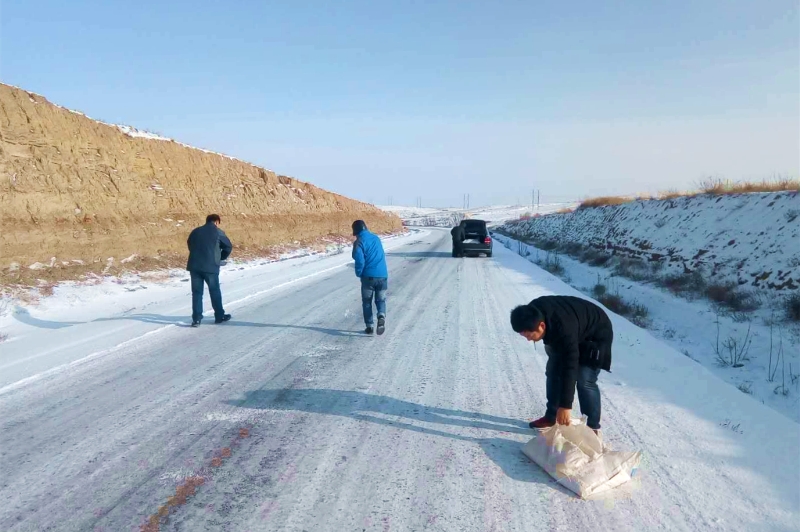 6日一早,雪還在下,舜龍公司總經(jīng)理助理、鄂爾多斯市舜龍公司總經(jīng)理蔣召舉帶領(lǐng)綜合經(jīng)營(yíng)部經(jīng)理王生貴趕赴泊江海子礦,會(huì)同貿(mào)易公司、礦煤銷科人員召開(kāi)現(xiàn)場(chǎng)會(huì),議定融雪除冰方案:只要雪一停,首先用鏟車推,接著撒融雪劑,最后用裝煤車碾壓。中午時(shí)分,雪勢(shì)明顯減弱,蔣總一聲令下,大家分頭行動(dòng)。因線路太長(zhǎng),人手緊張,準(zhǔn)備的融雪劑不夠用,接到通知后的色連二礦物流分公司經(jīng)理張有松帶著業(yè)務(wù)員蔣磊、龐士成和融雪劑火速馳援。經(jīng)過(guò)大家的共同努力,融冰效果非常明顯,路上的車輛逐漸多了起來(lái),看到舜龍公司員工上下同心,冒著零下17度的嚴(yán)寒鏟冰除雪,想司機(jī)安危之所想,急煤礦生產(chǎn)之所急,過(guò)往的司機(jī)有的向我們鳴笛表示敬意,有的向我們敬禮表示感謝,有的向我們豎大姆指表示欽佩!當(dāng)天完成發(fā)運(yùn)60車,7號(hào)259車,8號(hào)301車,9號(hào)436車。