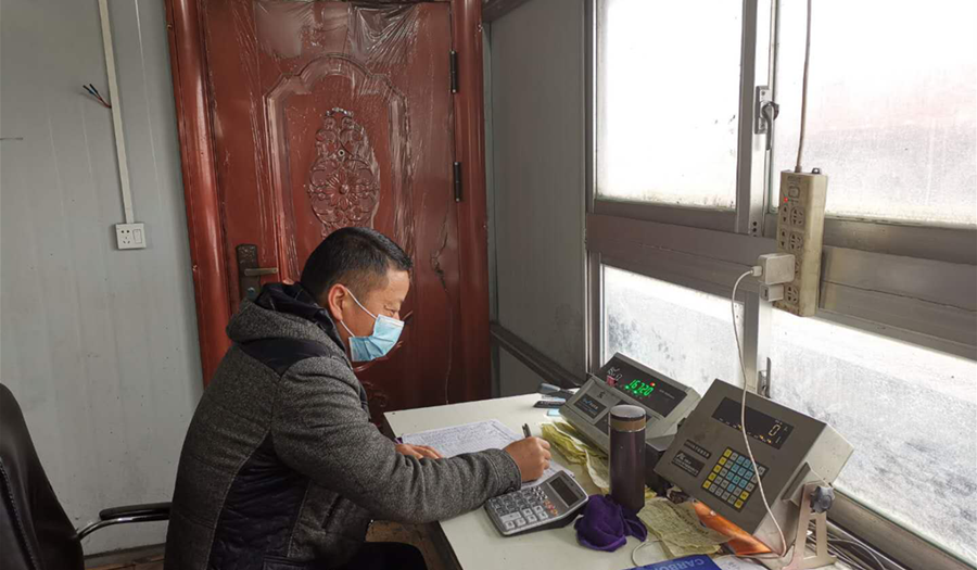 業(yè)務(wù)員陳從慶在何臺碼頭認(rèn)真對車輛過磅,核對空重車信息