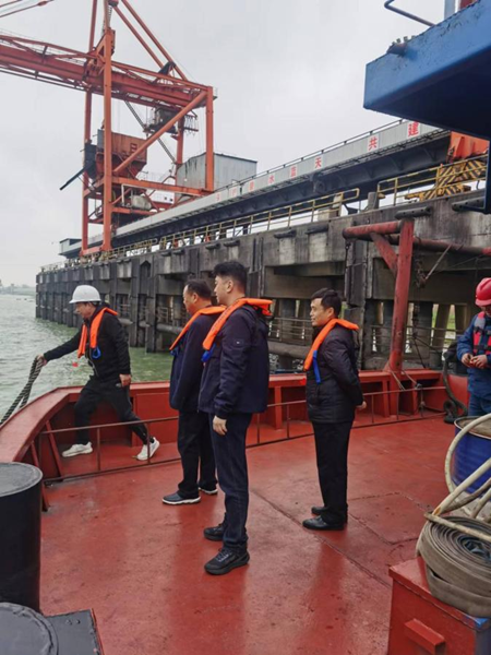 3月23日,公司黨委副書記、總經(jīng)理秦飛,副總經(jīng)理周俊帶領(lǐng)安監(jiān)辦主任鄒建春、江海調(diào)運(yùn)部張軍經(jīng)理、李飛經(jīng)理來到馬鞍山一電廠對正在卸貨的舜龍18號、和順18號江輪進(jìn)行慰問和調(diào)研。